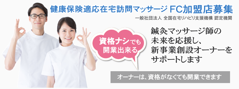 一般社団法人全国在宅リハビリ支援推進機構の認定機関である弊社のFCに加盟することで、医学的リハビリ療法を取り入れ、独自の営業戦略+戦術を取り入れた事業展開をしております。